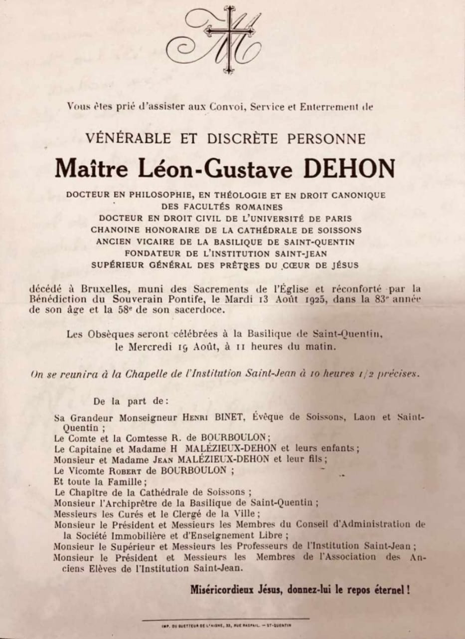 Léon-Gustave Dehon, religiosamente Jean du Cœur de Jésus,  nasceu em 14 de março de 1843, em La Capelle, França. Desde a adolescência, sentiu-se chamado para ser padre, embora contra a vontade do seu pai. Seguindo a vontade do pai, foi estudar Direito Civil em Paris e aceitou o convite (também do pai) para viajar por diversas regiões, incluindo a Terra Santa, numa tentativa de ajudá-lo a esquecer a ideia de se tornar padre.