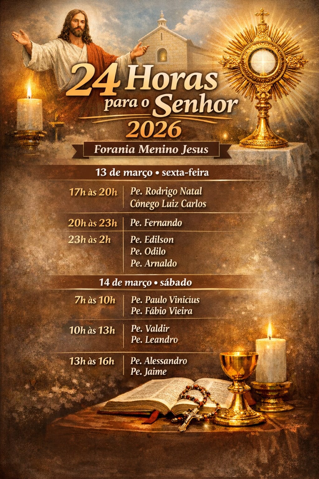 Neste tempo de Quaresma, período de conversão e preparação para a Semana Santa, a Forania Menino Jesus promoverá Mutirões de Confissões nas diversas Paróquias da Forania. Será uma oportunidade especial para que os fiéis se aproximem do Sacramento da Reconciliação, preparando o coração para celebrar dignamente os mistérios da Paixão, Morte e Ressurreição do Senhor.