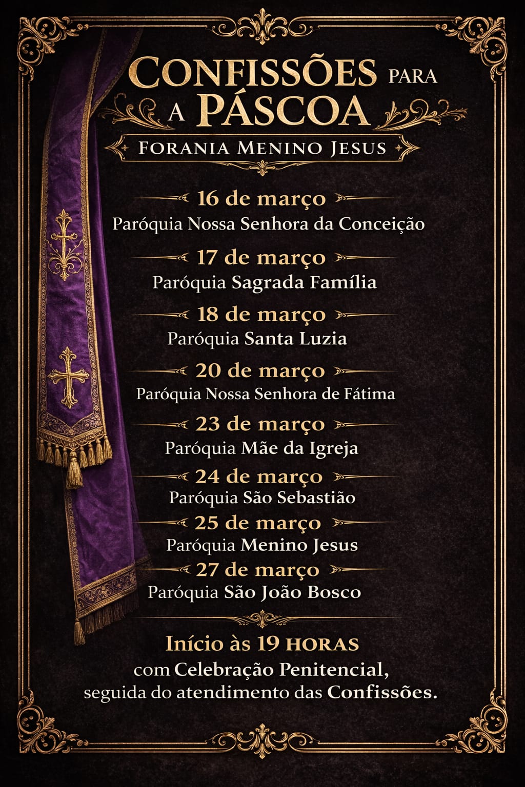 *Fique atento às datas, locais e horários das confissões nas diferentes Paróquias da Forania. 🙏✝️