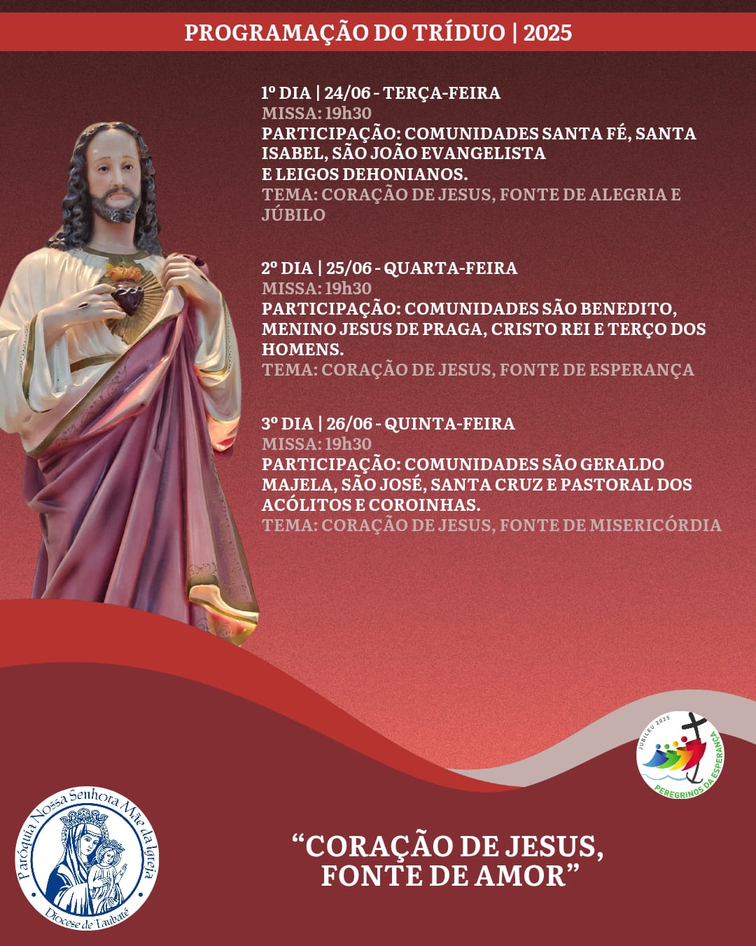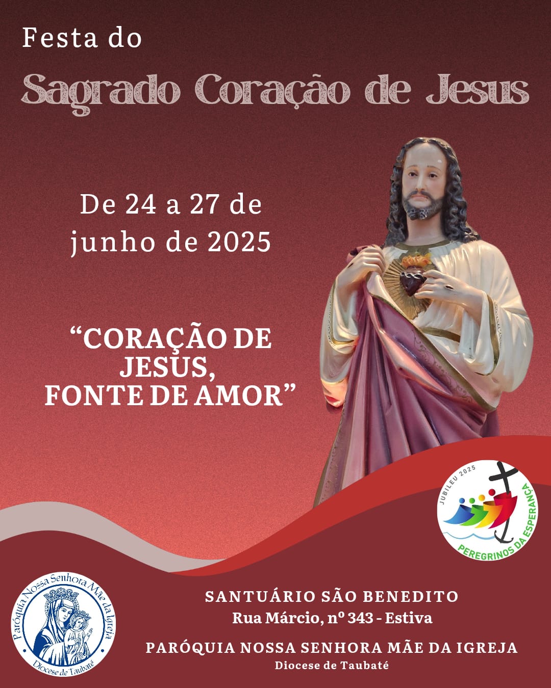 Teremos o Tríduo e Festa do Sagrado Coração de Jesus de 24/06 a 27/06.
