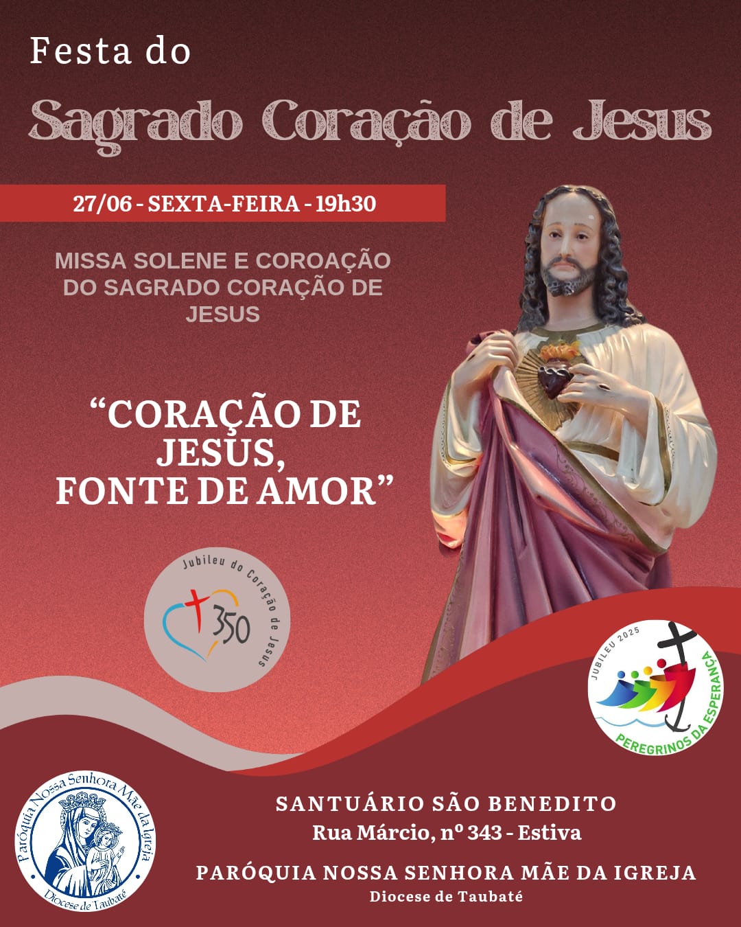 #sagradocoraçãodeJesus #mesdejunho #maedaigrejataubate #pnsmi #diocesedeTaubate