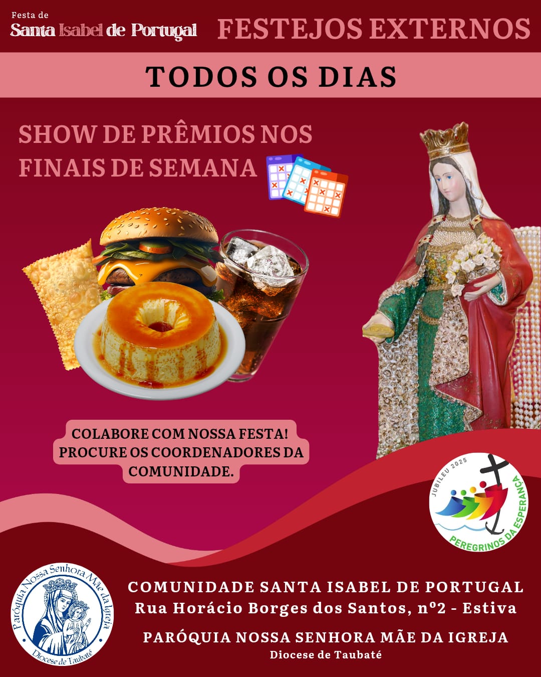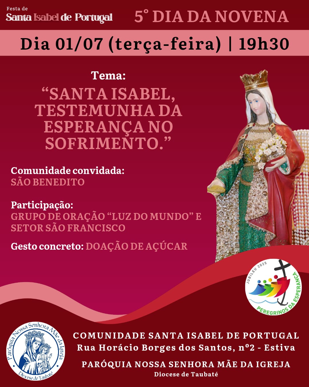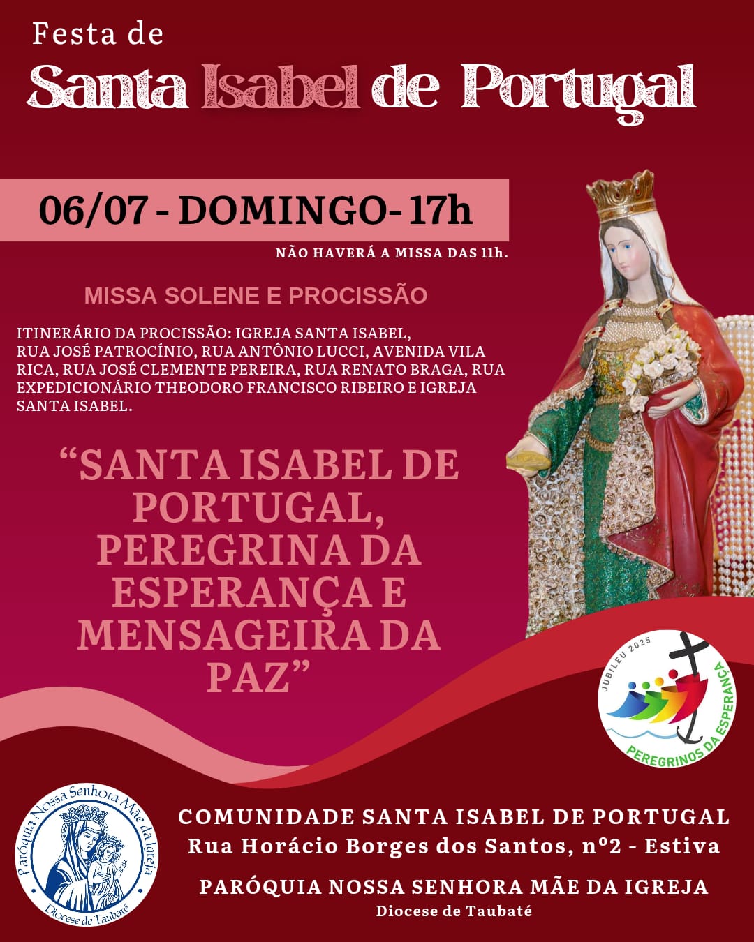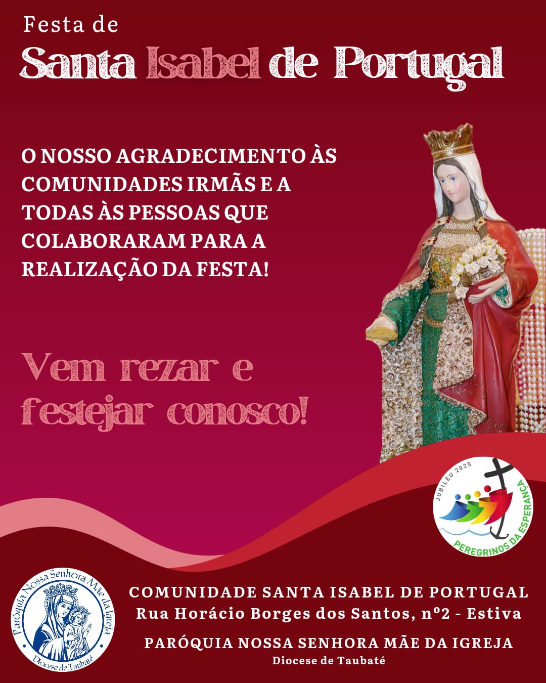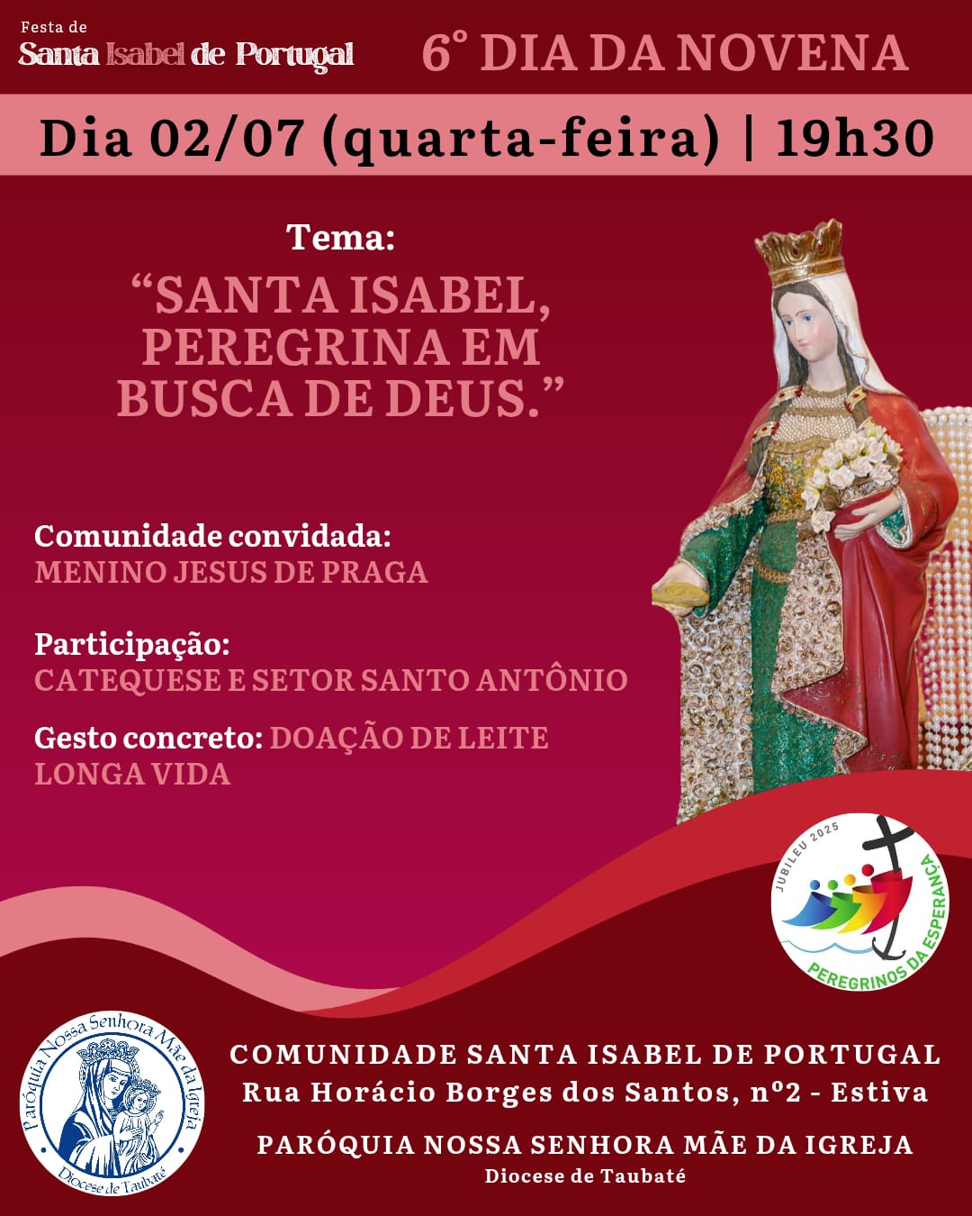 Início / Nossa Paróquia / PROGRAMAÇÃO NOVENA E FESTA COM. STA. ISABEL DE PORTUGAL